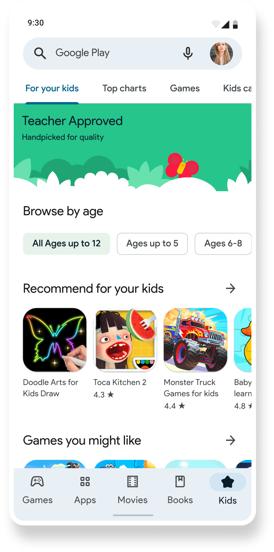 아이들의 안전한 앱 탐색을 위한 키즈 카테고리