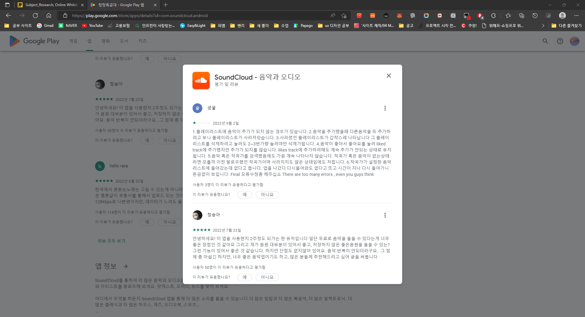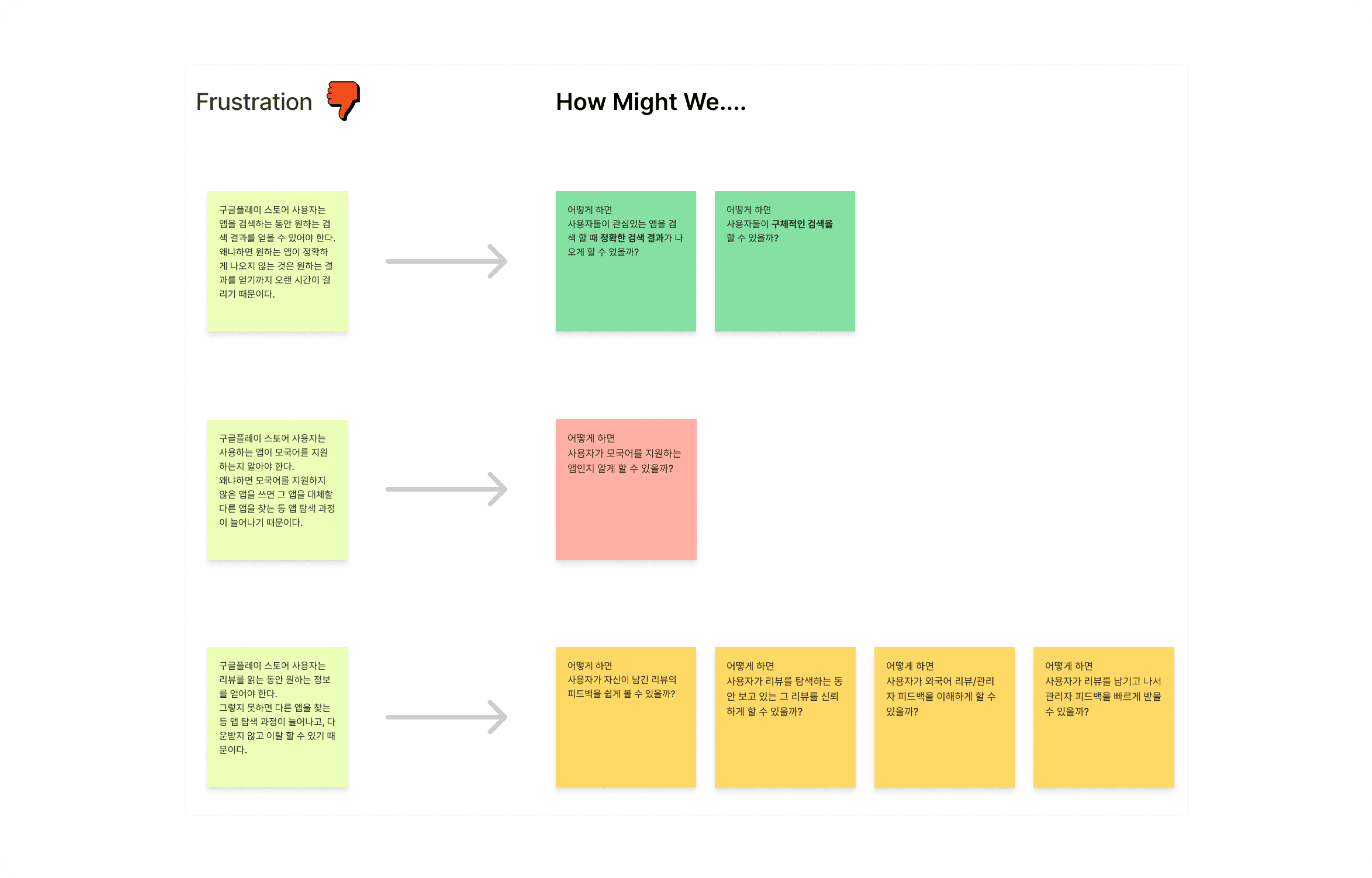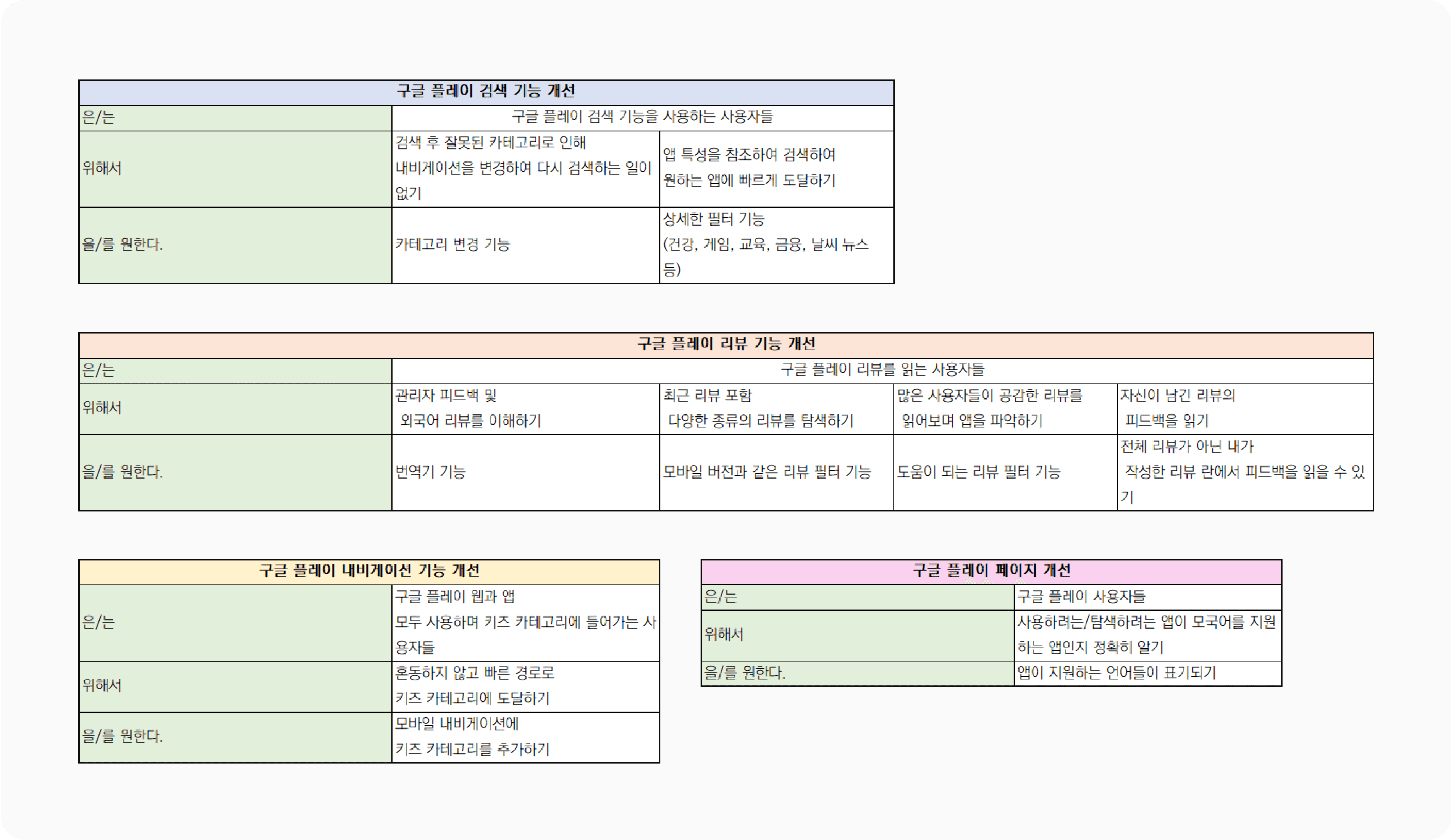 웹에서 구글 플레이를 사용해본 적 있는 사용자 중 19.4%가 만족하지 못했고, 만족하지 못하는 가장 큰 이유는 “앱에 맞춰진 UI’, “보기 불편” “정렬과 탐색 불편” 등이 있었습니다.