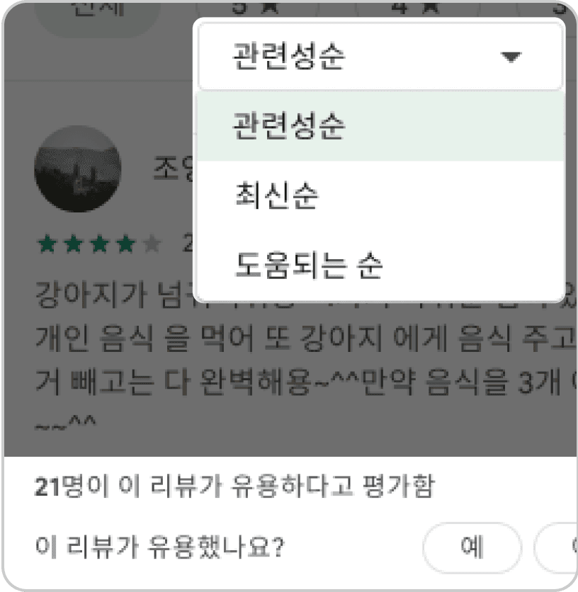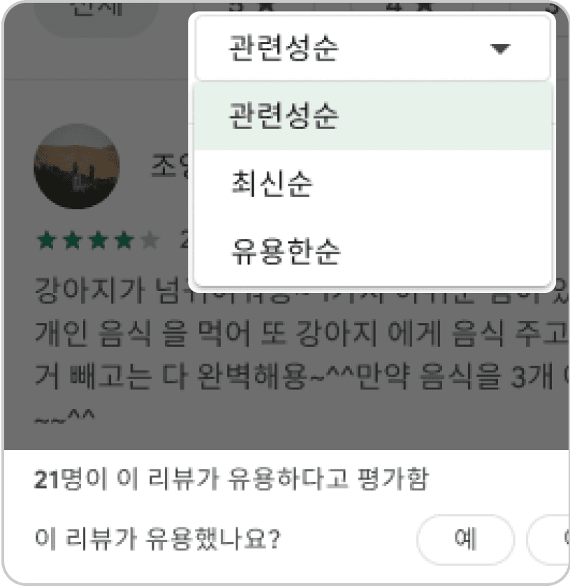 “유용했나요? -> 도움되는 순”은 연결이 안된다는 의견이 있었음