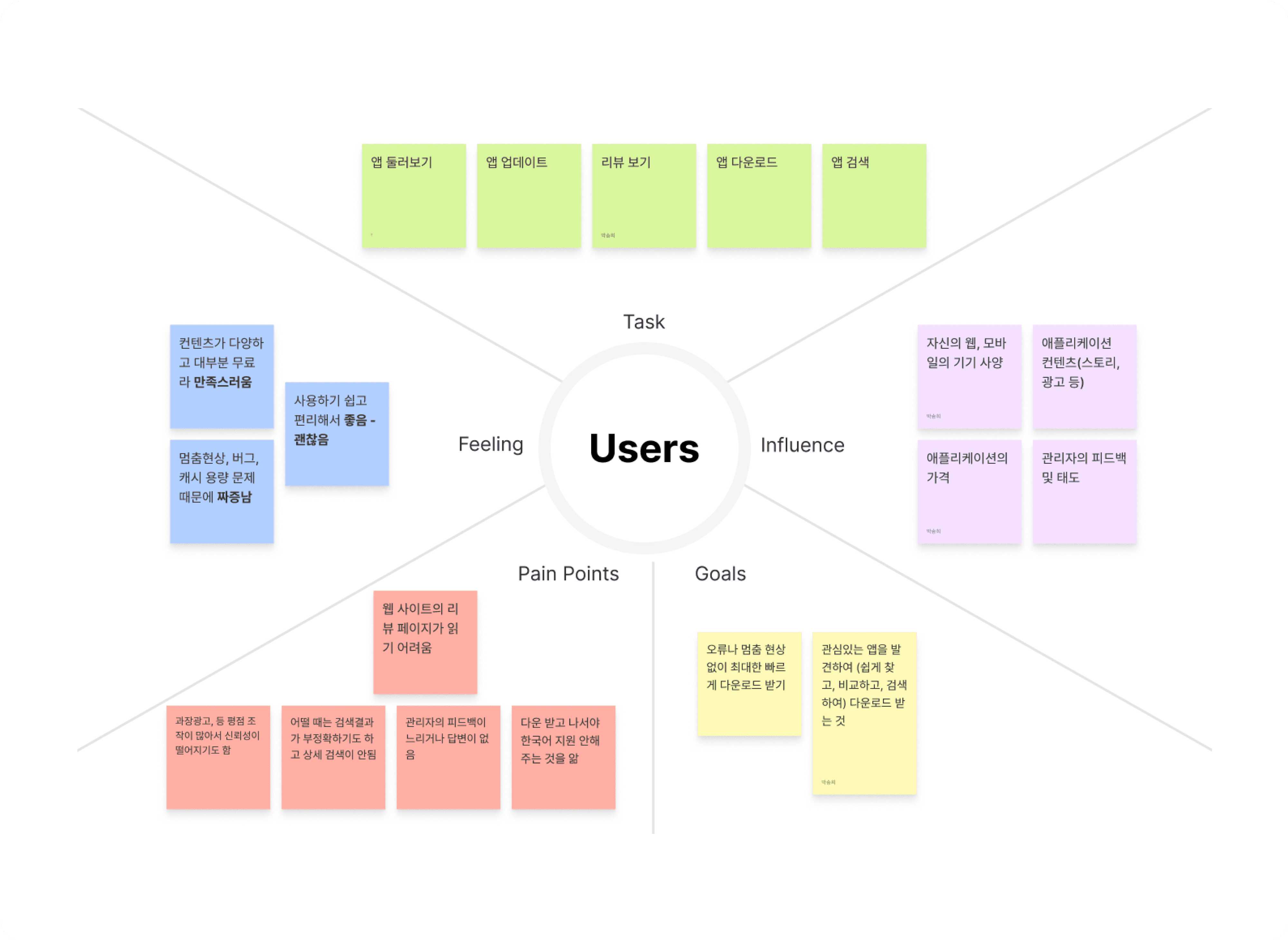 사용자는 주로 앱을 탐색한 후 원하는 앱을 다운로드 받는 것과 리뷰를 보기 위해 구글 플레이에 들어옵니다. 이 과정에서 불편함을 겪는다면 탐색 과정 중 이탈할 수 있으므로 탐색을 더 쉽게하는 것이 중요합니다.