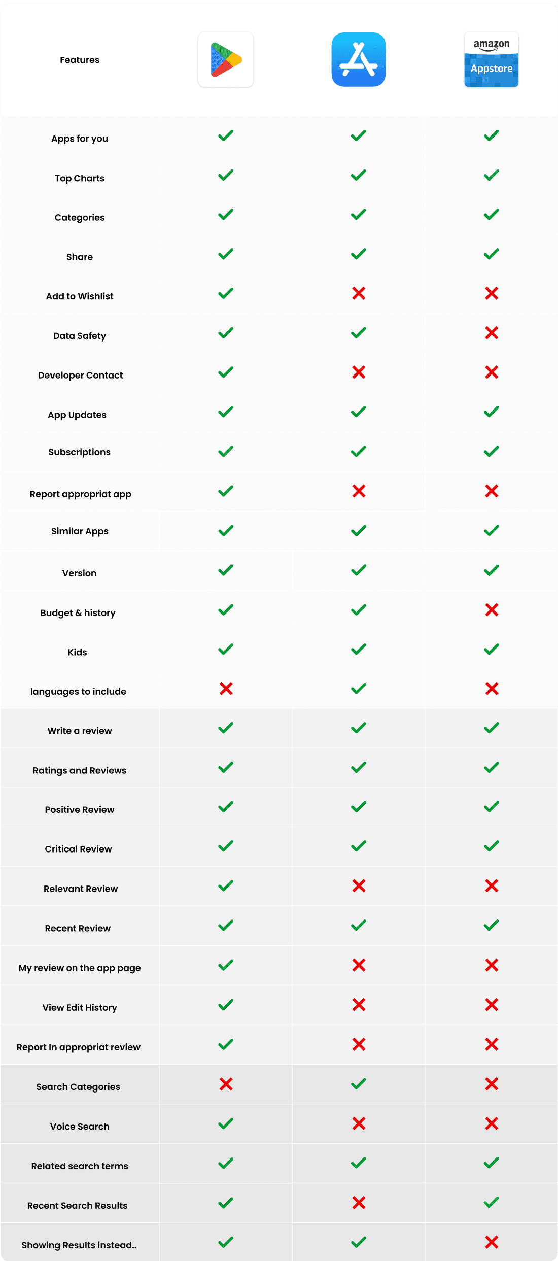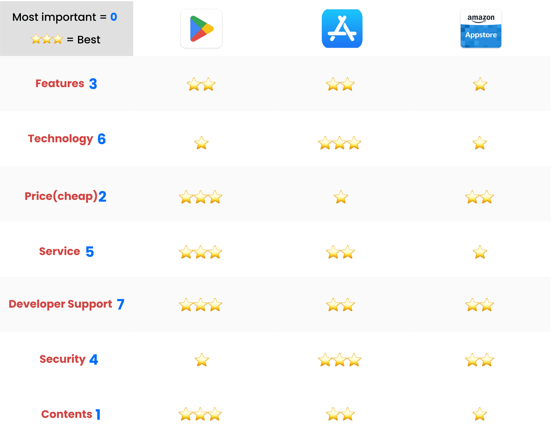 앱 스토어의 다양한 기능이 꼭 긍정적인 사용자 경험을 주는 것이 아닙니다. 다양한 기능이 더 적은 애플의 The App Store가 더 긍정적인 평가(심미성, 보안 문제 등)를 받았습니다.